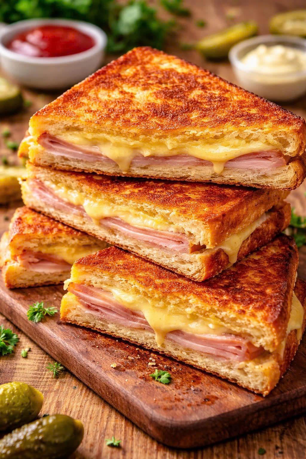 Le sandwich Monte Cristo est une délicieuse combinaison de jambon-fromage et de pain perdu 🍞✨.