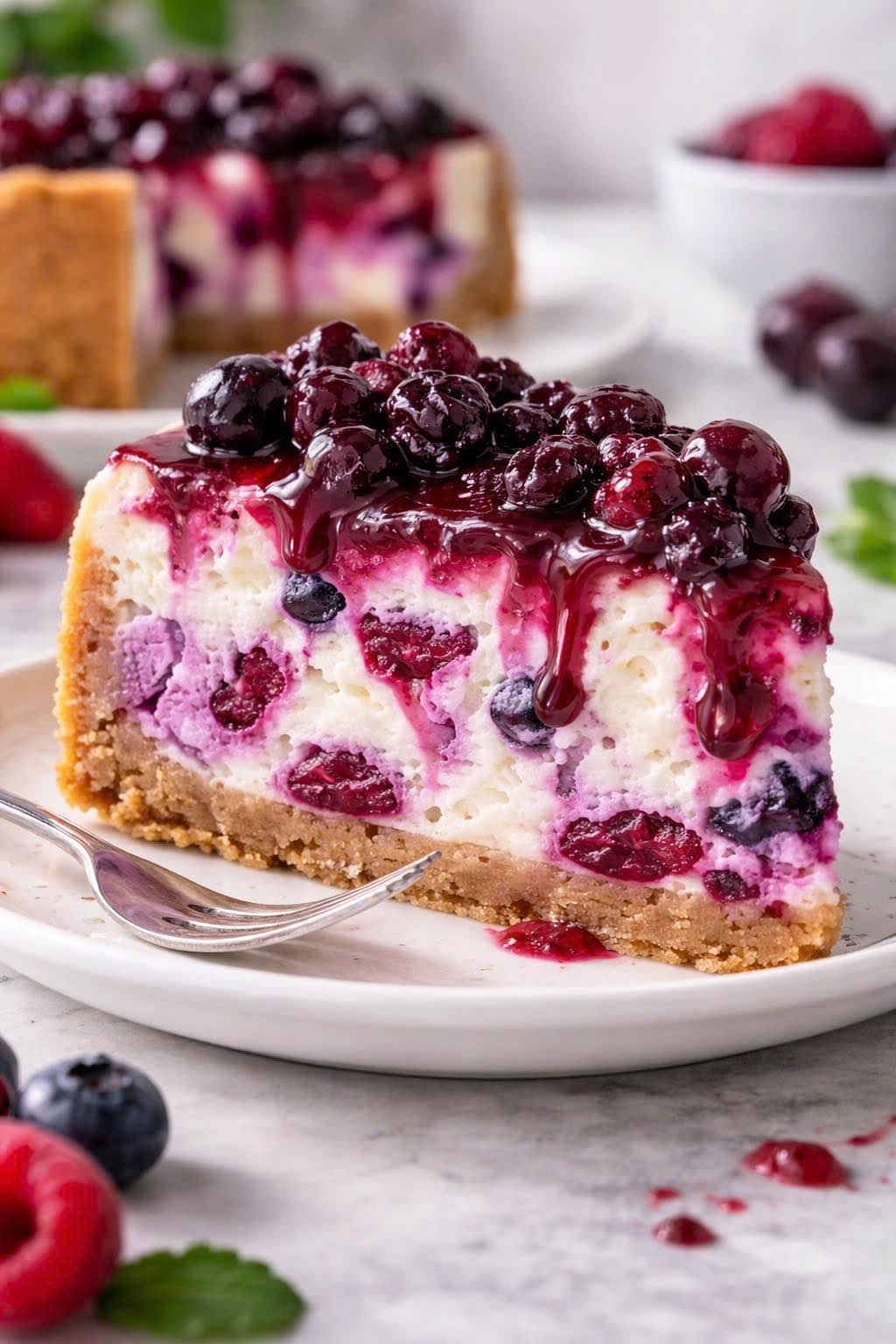 Cheesecake frais aux myrtilles : une recette facile et crémeuse sans cuisson