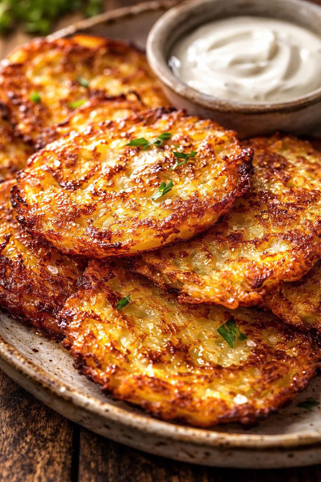 Les galettes de pommes de terre allemandes , appelées Kartoffelpuffer en Allemagne , sont une recette traditionnelle européenne réputée pour son extérieur croustillant et son intérieur moelleux. Elles sont préparées avec des ingrédients simples comme des pommes de terre râpées, des oignons et des œufs, puis frites jusqu'à ce qu'elles soient bien dorées.
