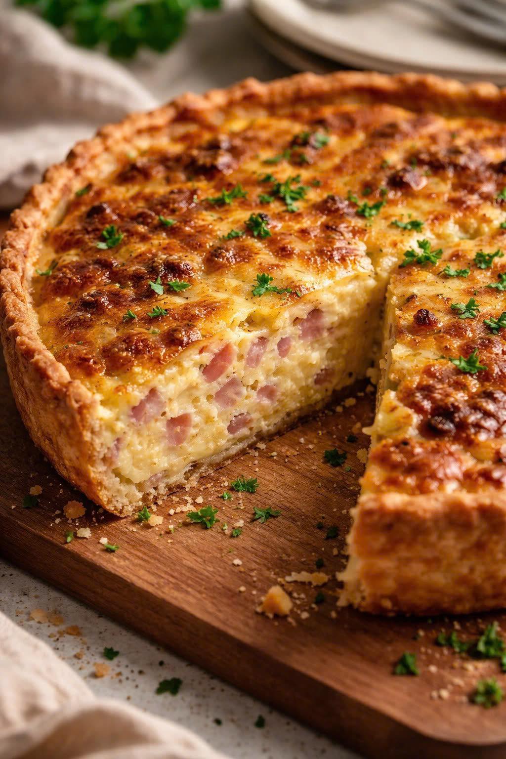 Ingrédients pour la préparation d'une quiche au fromage, au jambon et aux oignons